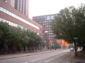 MITのキャンパスはやたら広い。一体どこまでがキャンパスでどこからが外部なのかさえわからない。まさにキャンパス都市である。早朝なのと夏休みなのでほとんど人影がない。そんななか米国の都市にはどこにでもいるリスが目の前を走って木にのぼった。