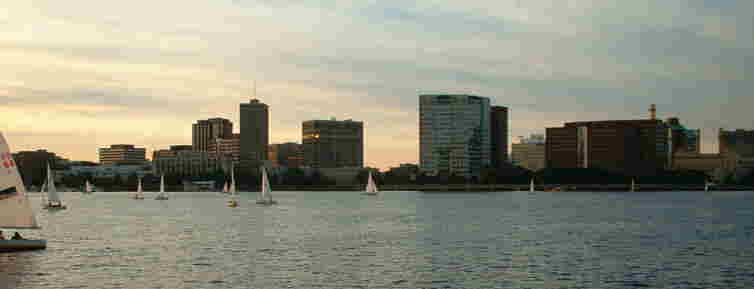 ボストン市街からチャールズ川越しにケンブジッジのマサチューセッツ工科大学を臨む