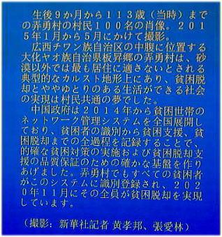 | 中国の貧困撲滅が世界的な貧困削減にも貢献 中国文化センター写真ギャラリー <関連報告> 中国の貧困削減実践の壮大なプロセス 環球時報 中国、貧困救済の経験を共有 中国日報 ![]() 中国文化センターによる「中国貧困脱却成果展」の 青山貞一 写真撮影:池田こみち ![]() 中国文化センターによる「中国貧困脱却成果展」の 池田こみち 撮影:青山貞一 ![]() ![]() 写真撮影:青山貞一(東京都市大学名誉教授) ![]() 以下は東京都港区にある中国文化センターで2021年6月下旬~7上旬に開催された「中国貧困脱却成果展」にあった中国「科技日報」からの転載である。 中国の貧困撲滅が世界的な貧困削減にも貢献 7億人以上が貧困から脱却し、 国連「持続可能な開発の2030アジェンダ」 の貧困削減目標を10年前倒しで達成 リウ・ハイイン(科技日報)、ドゥ・ハイビン(科技日報)、 ロン・ユン(科技日報記者) 科技日報 本文 5月18日に開催されたビデオリンクによる第73回世界保健総会(WHA)の開幕式で中国の習近平国家主席は「中国はCOVID-19(新型コロナウイルス)対策と被災諸国、特に発展途上国の経済社会開発を支援するため、今後2年間に20億米ドルを拠出する。 さらに、G20諸国と協力して、最貧国の債務返済猶予に関するイニシアチブを実行する」と発表した。また、国際社会とともに巨額債務負担に苦しむ国々が現在の困難を克服できるよう支援を強化するつもりであると続けた。 フランスの中国研究専門家、ソニア・ブレスラー氏は、習主席の演説は「人類は同じ空の下に住んでいる」という中国のビジョン、および、伝染病封じ込めと貧困撲滅で団結と連帯を促進する中国のコンセプトを世界に示したと語った。 「改革開放政策の導入以来、中国の圧倒的多数の国民は自ら貧困から脱却し、国連ミレニアム開発目標を達成した初めての途上国になる。極貧撲滅はアフリカの政府が最優先すべきであり、この点で中国の経験は参考になる。」と南アフリカの主要メディア、インディペンデント・オンラインの記事は報じ、「中国は指導部が明確な政策、資源、現実的目標、厳格な規律によって国家を動員したことから、貧困との闘いで飛躍的発展を遂げた」と付け加えた。 貧困撲滅は、中国政府が常に最優先してきた重要テーマである。中国は改革開放政策を採用して以来、貧困撲滅にコミットしてきた。経済発展に沿って徐々に貧困削減目標を調整し、貧困削減業務を標準化、制度化する特別な部署を創設した。 習主席は2013年、湖南省湘西で「標的型貧困救済」戦略を推進した。2014年5月12日、国務院貧困救済室はその他の部署と共同で「標的型貧困撲滅実行メカニズム設定の実施計画」を策定した。2016年12月2日、国務院は第13次5カ年計画(2016-2020年)の貧困撲滅計画を発表した。地方政府が貧困と闘う行動指針、関連部署が特別貧困撲滅計画を策定する重要な基礎になるものである。 中国国家統計局のデータによると、地方の貧困住民は1978年の約7億7,000万人から2019年末までに551万人に減少し、貧困率はこの間97.5%から0.6%に減少した。97.5%から0.6%へ、7億7,000万人から551万人へ、この大きな差異の背景には、中国が数十年にわたり「貧困撲滅」の為に、絶え間ない探究と努力がある。 3月6日、貧困撲滅の決定的勝利確保に関するシンポジウムで習主席は「今年、貧困撲滅の課題を完了する。中国は国連・持続可能な開発のための2030アジェンダの貧困削減目標を10年前倒しで達成することになる。それは中国と世界の双方にとって大きな意味がある。世界のどの国も、これほど短期間にこれほど多くの人々を貧困から脱却させたことはなかったからである」と語った。 持続可能な開発のための2030アジェンダと持続可能な開発目標(SDGs)の実行サポートを主な任務とする国連開発計画(UNDP)は、ここ数十年の中国の発展を称賛した。それは世界に深い印象を与えている。中国は、国連・持続可能な開発のための2030アジェンダが設定した貧困撲滅の目標を達成する初めての国になる。 UNPDが編纂に関わっている最新版の「中国人間開発報告書特別版」では、中国の多角的アプローチによる包括的な貧困撲滅戦略は、中国が推進する人類発展のモデルケースであり各国の参考ともなる、と指摘している。 UNDPのアヒム・シュタイナー総裁もメディアに対し、中国の貧困撲滅達成は規模と期間で前例がないと語った。より体系的、組織的に経済を発展させるやり方は各国にとってヒントとなり、また国連のSDGs、および、誰ひとり取り残さないという考えと一致していると指摘した。 国連は持続可能な開発のための2030アジェンダの貧困削減目標を達成するのは困難と予測している。とりわけ、COVID-19パンデミックが途上国などグローバル経済にマイナスの影響を与えるとみている。 アミーナ・J・モハメド副事務総長は、今年2月ジンバブエで次のように話した。アフリカ諸国が近年、持続可能な経済社会開発の振興で前進していると語った。しかし、全体的にみるとアフ