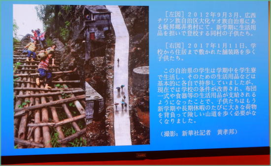 | 中国の貧困撲滅が世界的な貧困削減にも貢献 中国文化センター写真ギャラリー <関連報告> 中国の貧困削減実践の壮大なプロセス 環球時報 中国、貧困救済の経験を共有 中国日報 以下は開会当日のオープニングセレモニーで中国文化センターが撮影した写真と2021年7月2日(金)午前のに青山貞一と池田こみちが撮影した写真の一部です。 ![]() これは初日のセレモニー 駐日孔中国大使が挨拶 出典:中国文化センター ![]() これは初駐日孔中国大使の開会挨拶 出典:中国文化センター ![]() これは初日のセレモニー 駐日孔中国大使が挨拶 出典:中国文化センター ![]() 撮影:青山貞一 Nikon Coolpix S9900 ![]() 撮影:青山貞一 Nikon Coolpix S9900 ![]() 撮影:青山貞一 Nikon Coolpix S9900 ![]() 写真撮影:センター管理人 iPhne ![]() 写真撮影:センター管理人 iPhne ![]() 撮影:青山貞一 Nikon Coolpix S9900 ![]() 撮影:青山貞一 Nikon Coolpix S9900 ![]() 撮影:青山貞一 Nikon Coolpix S9900 ![]() 撮影:青山貞一 Nikon Coolpix S9900 ![]() 撮影:青山貞一 Nikon Coolpix S9900 ![]() 撮影:青山貞一 Nikon Coolpix S9900 ![]() 撮影:青山貞一 Nikon Coolpix S9900 ![]() 出典:中国文化センター ![]() 雲南省勐臘(もうろう)県川辺村に滞在視察するASEANの各国代表 出典:中国文化センター ![]() 撮影:青山貞一 Nikon Coolpix S9900 ![]() 撮影:青山貞一 Nikon Coolpix S9900 ![]() 撮影:青山貞一 Nikon Coolpix S9900 ◆「幸せな生活を追い求めて」中国貧困脱却成果展が東京で開幕 人民網日本語版 2021年06月30日15:57 「幸せな生活を追い求めて」中国貧困脱却成果展が東京で開幕 6月28日、中国共産党創立100周年祝賀「幸せな生活を追い求めて」中国貧困脱却成果展の開幕式で挨拶する中国の孔鉉佑駐日大使。(撮影・呉穎) 中国共産党創立100周年祝賀「幸せな生活を追い求めて」中国貧困脱却成果展の開幕式が28日、東京中国文化センターで行われた。中国の孔鉉佑駐日大使、日本の松下新平参議院議員、日中投資促進機構の長岡豊樹事務局長ら政界、経済界、文化界の代表及び中日両国のメディアが参加した。人民網が伝えた。 孔大使は挨拶で、「今年初めに、習近平総書記は全国貧困脱却難関攻略総括表彰大会で、中国共産党創立100周年を迎える重要な時期に、中国が貧困脱却の難関攻略戦において全面的な勝利を収め、絶対的貧困の撲滅という極めて困難な任務を完了したことを厳かに宣言した。本日我々が中国貧困脱却成果展を開催するのは、この苦労の末に得られた成果を記念するためだ。本日展示されている写真の1枚1枚が、中国の貧困脱却の難関攻略事業の真の姿を示している」と指摘。 「貧困の緩和と撲滅は人権保障の重要な内容だ。長年来、中国共産党と中国政府は常に基本的国情に立ち、国民の生存権と発展権を最重要視し、貧困削減と貧困脱却に尽力し、民生の保障と改善に努力し、発展の成果の恩恵がより公平に国民全体に及ぶようにしてきた。 また、自国の貧困撲滅に尽力すると同時に、無数の発展途上国の貧困撲滅も積極的に支援し、貧困削減の国際研修・協力・交流を通じて自らの貧困削減のソリューションと経験を国際社会に提供した。さらに、積極的に『一帯一路』(the Belt and Road)国際協力を推し進め、人類運命共同体の構築を後押し、中国発展のチャンスとメリットを世界各国が共有できるようにしてきた」と表明した。 孔大使はまた、「中国の貧困脱却事業の成功は、日本を含む国際社会からの支持も得た。貧困者支援協力は中日協力の重要な一部であり、中日友好を示しているものでもある。現在中国は社会主義現代化国家の全面的建設という新たな征途に就き、日本も重要な発展段階にあり、両国関係は一連の重要な発展のチャンスを迎えるとともに、いくつかの複雑な要素に直面してもいる。 両国は来年国交正常化50周年を迎える。また双方はそれぞれ東京五輪と北京冬季五輪も開催する。来賓各位がこの行事を契機に、一層全面的かつ深く中国を知り、各分野での中日交流・協力に積極的に助力し、中日関係及び両国間の交流や協力が一層の発展を遂げる後押しをすることを希望する」と述べた。 同展は在日本中国大使館、中国国務院新聞弁公室、中国国家郷村振興局が共催。来賓一同は中国の貧困脱却の成果を示すミニ・ドキュメンタリーを視聴。東京中国文化センターの羅玉泉センター長の解説で写真展を見学し、教育、文化、観光、電子商取引、移住などを通じた中国の「ターゲットをしぼった貧困支援」の実践について理解を得た。同展は写真80枚余りを展示し、7月2日まで開かれる。(編集NA) |