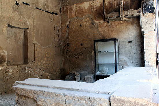 ![]() プルンバリウスの工房 Source:Wikimedia Commons CC BY-SA 4.0, Link 現地ブロック案内 ヴェスヴィオ総合メニュー 用語集 本稿の解説文は、現地調査に基づく解説、写真撮影に加え、Wikipediaのイタリア語版を中心に英語版からの翻訳及び日本語版を使用しています。また写真は現地撮影分以外にWikimedlia Commons、さらに地図はグーグルマップ、グーグルストリートビューを使用しています。その他の引用に際しては、その都度引用名をつけています。 ブロック V I 中央公衆浴場1 中央公衆浴場2 男性浴場 女性浴場 グランド・タベルナ1 黒いホールの家1 黒いホールの家2 鍛冶屋の工房 二つのアトリウムの家1 二つのアトリウムの家2 トスカーナ列柱の家1 トスカーナ列柱の家2 ◆鍛冶屋(プルンバリウス)の作業場 (VI .12) Bottego del Plumbarius(伊)、House of the Black Hall(英) ![]() 参照: AD79eruption - Google Sites 以下のブロック図で、「鍛冶屋(プルンバリウス)の作業場」は12です。 ![]() Source:AD79eruption - Google Sites 以下はグーグルマップによる「鍛冶屋(プルンバリウス)の作業場」は12の位置(★)です。この「鍛冶屋(プルンバリウス)の作業場」はもともと、Bの「黒いホールの家」の一部でした。 ![]() Source: Google Earth ![]() Source: Google Earth ![]() 右側の案内表示は黒いホールの家です。 撮影:青山貞一 Nikon Cool Pix S8 2016年2月 以下は「鍛冶屋(プルンバリウス)の作業場」の正面からの外観です。 ![]() プルンバリウスの工房 Source:Wikimedia Commons CC BY-SA 4.0, Link プルンバリウスの工房は1961-62年に発掘されました。プルンバリウスの工房は、鍛冶屋(ラテン語で鉛の作業員を意味する)の作業場でした。その中には作業道具が入っていました。溶解釜、鉛のボイラー、冷却のための水を入れる土器、金属を溶かすために火を復活させるための焦げた木までもが入っていました。鍛冶屋が作業していたものは、鉛のパイプ、鉄の取っ手、そして何よりも金と銀のプレート(アゲミナ技法)で装飾された、パンサーを連れたバッカスのブロンズ像も発見されました。鍛冶屋の仕事場であった以前は、古代でもカウンターの形や、愛飲者の飲み物を入れたアンフォラが置かれていた木製の食器棚が示唆しているように、この部屋はワインを飲むための場所であった可能性が高いです。 出典: この店は、もともとカサデルサローネネロの一部でしたは、冶金学者の工房として機能したと書いています。 正面に長いベンチ/カウンターがある店では、溶けるるつぼ、鍛造品の冷却に使用されるいくつかのテラコッタポットおよびるつぼの炎を供給するのに役立つと思われる焦げた木の要素が見つかりました。 鉄の道具。 彼らはまた、鉛のインゴット、パイプの破片、鉄の柄をはんだ付けしなければならなかった石灰岩の重り、大理石の土台を備えた青銅のカンデラブラム、金、銀、銅の装飾が施されたバッカスの青銅の彫像をすべてコースで回収しました修理されています。 ヘルクラネウムVI.12。鉛直の店(金属労働者、溶接工または鍛冶屋)。 パート1パート2 ウォレス・ハドリルによれば、この店には後部の部屋と上層階への階段がありましたが、装飾はありませんでした。 Wallace-Hadrill、A.、1994を参照してください。ポンペイとヘラクラネウムの住宅と社会。ニュージャージー:プリンストンUP(p.206) 1961年9月、マイウリは次のように書いています– 「金星の噴水の隅にある店のドアでアシスタントのフスコが光っているのを見つけました。今回は、カヴァモンティ(トンネル)が彼の最も美しい獲物をだましていませんでした。それはブロンズ労働者のワークショップであり、より正確には壊れたブロンズの溶接機と調整装置でした:そして私たちはディオニュソスの楽しい小像とブロンズのシャンデリアの両方の中に修復が必要であることがわかりました:像の足元のベースを再はんだ付けするシャンデリアのアームをシャフトに再び取り付けるために、鉛のインゴット、炉床、溶けるるつぼも使用できるようになりました。簡単な操作ですが、私たちの良いプルンバリウスが実行する時間がなかったので、小像とシャンデリアは彼らの正当な所有者、家の裕福な所有者の一部、ヘルクラネウムの郊外の別荘に戻されませんでした。」 ![]() プルンバリウスの工房 Source:Wikimedia Commons CC BY-SA 3.0, Link ![]() プルンバリウスの工房 Source:Wikimedia Commons CC BY-SA 4.0, Link ![]() プルンバリウスの工房 Source:Wikimedia Commons CC BY-SA 4.0, Link |