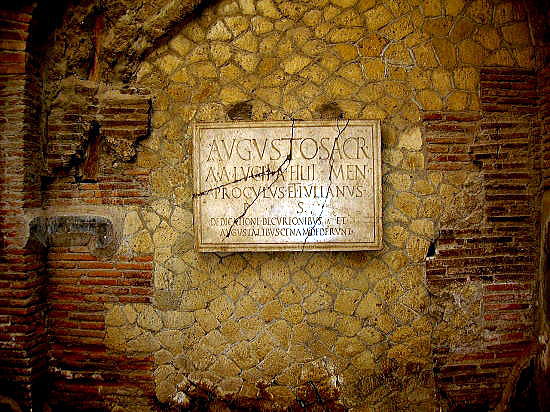![]() 中央がアウグストゥスの聖水盤(sacellum) 撮影:青山貞一 Nikon Cool Pix S8 2016年2月 現地ブロック案内 ヴェスヴィオ総合メニュー 用語集 本稿の解説文は、現地調査に基づく解説、写真撮影に加え、Wikipediaのイタリア語版を中心に英語版からの翻訳及び日本語版を使用しています。また写真は現地撮影分以外にWikimedlia Commons、さらに地図はグーグルマップ、グーグルストリートビューを使用しています。その他の引用に際しては、その都度引用名をつけています。 ブロック VI アウグスト礼拝所1 アウグスト礼拝所2 アウグスト礼拝所3 アウグスト・バジリカ1 アウグスト・バジリカ2 アウグスト・バジリカ3 アウグスト・バジリカ4 ◆アウグストゥス礼拝所 (Ins VI, 21-24) Collegio degli Augustali(伊)、College of the Augustales(英) ![]() Source::AD79eruption - Google Sites 以下のブロック図で、「アウグスト礼拝所」はDです。 ![]() Source:AD79eruption - Google Sites 以下はアウグストゥス礼拝所の周辺を示すのグーグル地図です。 ![]() 出典:グーグルマップ 以下はウグストゥス礼拝所を示す地図です。 ![]() 出典:グーグルマップ 以下は南側からアウグストゥス礼拝所をさう呈した写真です。 ![]() アウグストゥス礼拝所の外観 出典:グーグルマップ ガイド 南に向かうと、質素な家々や店とともに、壁に、神話の風景を生き生きと描いた装飾のある正方形の大きな建物ががあり、そこにはキュリア(Curia:上院議員のための建物)か、あるいはおそらく市民がラレースへの礼拝の儀式に使用する場所(礼拝所)があります。 反対側の隅で発見されたから遺物/遺跡は、アウグストゥス礼拝所(college of Augustals:皇帝アウグストスに捧げた礼拝所あるいは神殿)である可能性があります。 ここでは名称をアウグストゥス礼拝所としています。 注)ラレース(Lares、古い綴りは Lases) Wikipedia 古代ローマ時代の守護神的な神々(複数)である。単数形はラール (Lar)。その起源はよくわかっていない。家庭、道路、海路、境界、 実り、無名の英雄の祖先などの守護神とされていた。共和政ローマ の末期まで、2体の小さな彫像という形で祭られるのが一般的だった。 (中略) ラレースはいくつかの公けの祭りで祝福され礼拝された。 中には vici (行政区)全体を守護するとされたラレースもある。また、 ラレースを祭った交差点や境界線にある祠(コンピタレス; Compitales) は、宗教、社会生活、政治活動の自然な焦点となっていた。これらの 文化はローマ帝国初期の宗教・社会・政治改革に取り込まれた。ラレ ースを家庭内に祭るという文化は変化しなかったようである。これらは 少なくとも紀元4世紀まで持ちこたえた。 注)アウグストゥス礼拝所(College of Augustals) Tripadvisor アウグスターレ礼拝所は、非常に美しい寺院で、皇帝アウグストゥスに捧 げられたものです。室内は、現在も貴重な大理石の厚い板の上に素晴 らしいsopus sectile技法によって描かれたヘラクレスやその他の神々の フレスコ画で彩られています。 下は、アウグストゥス礼拝所の正面玄関を道路側に出て南側を撮影した写真です。 写真中央の先に高架橋が見えます。 ![]() 撮影:青山貞一 Nikon Coolpix S8 2016年2月 以下は、アウグストゥス礼拝所の番地表示です。アウグストゥス礼拝所はVIの21~24を占めています。写真はVIの24です。 ![]() 撮影:青山貞一 Nikon Cool Pix S8 2016年2月 アウグストゥス礼拝所は、素晴らしい壁画が沢山残っている建物です。エルコラーノでは奴隷に対し自由民に昇格する権利が与えられており、五賢帝の一人、アウグストゥスを崇拝する解放奴隷グループが会合などにこのアウグストゥス礼拝所を用いていました。 注)アウグストゥスとは 志半ばにして倒れた養父カエサルの後を継いで内乱を勝ち抜き、 地中海世界を統一して帝政(元首政)を創始、パクス・ロマーナ (ローマでの平和)を実現しました。ちなみにアウグストゥスは、ラテ ン語で「尊厳ある者」を意味しており、現在の英語やドイツ語やオラ ンダ語等のゲルマン派諸語や、ギリシア語、スペイン語やポルトガ ル語やフランス語等のロマンス語派諸語、ロシア語やウクライナ語 やベラルーシ語等のスラヴ語派諸語等、欧米諸国の全域に於いて 「8月」(August)の意になっています。 アウグストゥスの当初の名前はオクタウィウスですが彼は成長ととも に幾度か名前を変えており、混乱を避けるために後代の歴史家は 彼をオクタウィアヌスと呼びましたが、オクタウィアヌスとは「オクタウ ィウスだった者」という意味であって、オクタウィウス自身がオクタウィ アヌスの名を用いたことはありません。 ![]() 撮影:池田こみち Nikon Cool Pix S6400 2016年2月 歴史と概要 Wikipedia Italia アウグストゥス礼拝所は、紀元前1世紀末、おそらく紀元前14年頃、アウグストゥス時代の全域の整理の際に建設されました。この建物は、2人のA兄弟が欲しがり、資金を出していた。1960年11月25日に発見され、現在はカレッジの側壁に置かれている床から2メートルほどの高さにある碑文にあるように、