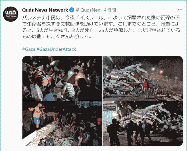 イスラエルの空爆レベルガザタワーにはAP、アルジャジーラ、その他の国際メディアが収容されている •2021/05/15 by RT ![]() 出典:RT 以下はRUPLYの動画(youtube) https://www.youtube.com/watch?v=688_4rFq97o ![]() 出典:RT ![]() 出典:RT 以下の出典はアルジャジーラ ![]() ![]() 以下の出典はQuds News Network ![]() ![]() |