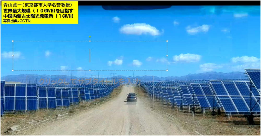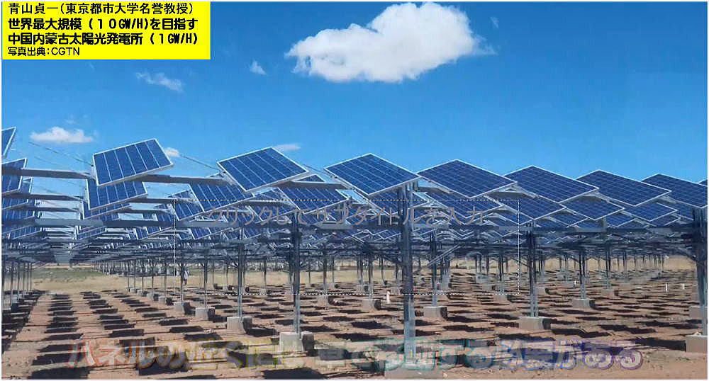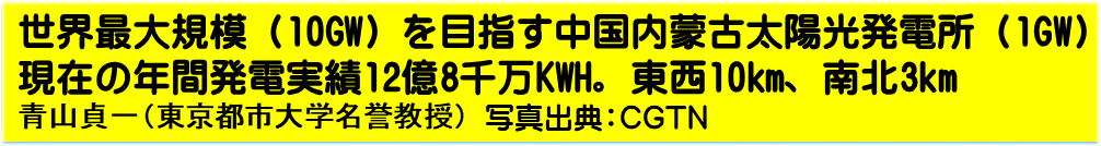 中国:世界最大(10GW)を目指す 内モンゴル自治区の太陽光発電所 青山貞一 Teiichi Aoyama(東京都市大学教授) 池田こみち Komichi Ikeda(環境総合研究所顧問) 独立系メディア E-wave Tokyo 2021年6月23日 公開 |