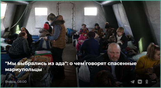![]() ドミトリー・トロヤン ビデオフレーム - RIA Novosti, 1920, 20.04.2022. © RIA Novosti / Maria Marikyan 本文 ドネツク、4月20日 - RIA Novosti、Maria Marikyan。 最も重い患者(民間人と兵士)は、ドネツク共和国外傷センターに運ばれる。 外傷性切断や貫通傷は一分一秒を争う。すべては最前線の衛生兵の手に委ねられる。 RIA Novostiは、DPR軍の戦闘員が何を言い、どのように戦場で負傷者を救うのかをレポートしています。 「生きなければならない 」と決意したこと。 「誰もが話したい 」というわけではない。病棟の入り口にいた看護婦が小声で言った。「自分のことよりも、身内のことを心配しているんです。 - そんな部隊から来たからには、みんなをお膳立てしてあげたい。 - 私はマリウポルにいました。公にしたくないのですが、私の両親がそこにいます。 - そして、何も隠すことはない。 ![]() ベジメンノエ村にDPR緊急事態省が設置した仮設宿泊施設にいるマリウポリからの避難民 - RIA Novosti, 1920, 19.04.2022. 昨日08:00 「地獄から抜け出した」マリウポリ住民の声 マキシム・フクレフは2015年から戦っている。2年前、ある女性と出会い、退役を決意した。建設現場に就職し、少しずつ市民生活に慣れていった。しかし、2月には戻って来て、そのままマリウポリに行った。 「3月26日、私は大腿部に負傷した。私はBMPを使用していた。ハエ」「マルハナバチ」かと思った。それが地雷であることが判明した。 砲手は開いたハッチから落ちて助かった。足を吹き飛ばされた 意を決して、車から降りた。そうでなければ、私は撃たれていたであろう。支援はすぐに来た」と振り返る。 国家大隊については、「彼らは力強く戦い、十分な装備と武器を持っている。「塹壕の中でもインターネットができた」 地元では、国士は獣のように扱われたという。「民間人が水辺に行くと、スナイパーが 撃つ」。「人々は寒さの中、お腹を空かせて地下室に座り込んでいた。食料も分けてもらったよ」と傷ついた男は続ける。 イリザロフ装置を装着し、鼡径部の静脈を縫合した。数日後に再手術を行う予定です。しかし、Fuklevは「すべては計画通りに進んでいる」と楽観的である。 ![]() マリウポルのアゾフマッシュ工場にいるDPR人民民兵の兵士 - RIA Novosti, 1920, 19.04.2022. © RIA Novosti / Ilya Pitalev イメージバンクへ ![]() マリウポルのアゾフマッシュ工場の敷地内にいるDPR人民民兵の隊員「自分たちを見捨てない」。 ドミトリー・トロヤンは2018年に民兵に入隊した--モーターライズド・ライフル旅団に配属された。2年前、スナイパーに太ももを撃たれて最初の傷を負った。弾丸が坐骨神経を傷つけ、脚の血行が悪くなり、感度が低下した。 そして今年の春、マリンカ近郊での戦闘で、彼の2メートル先で手榴弾が爆発した。両目を負傷した。右はまだ薬で治療中だが、左は手術が必要。視力が保たれる保証はない。病状が悪化すれば、モスクワに送られることになる。 「国家警備隊、AFU、エイダル国家大隊と遭遇した。彼らは第17戦車軍団を我々の方向へ操作していた。一番大変だったのは、ヴォルノヴァカとマリンカ近郊です。結局、本隊が近づいてくるまで持ちこたえた。」 「仲間が一人亡くなり、もう一人は重傷を負った。私たちは、手伝いと撮影を同時に行わなければなりませんでした。それでも、私たちは生き残ったんだ」。- 殺された男を引き取ることができたのは、1週間後だった。自分たちを置き去りにする。そんな仲間たち。 ![]() ヴォルノヴァハでは、DPRの兵士たちが目に涙を浮かべながら、「今までどこにいたのか」と嘆いていた。 「地下室は湿気が多いので、子供たちが体調を崩すこともありました。現地の人がウクライナ人に薬を頼んだが、もらえなかった。それどころか、薬局も含めて略奪できるものはすべて略奪した」とトロイヤン氏は付け加えた。デマのように、8床の病棟で私たち一般市民と一緒に寝ている人もいるんですよ...」と隣人は憤慨する。-「 この人たちは、私たちの腕に抱かれるべき価値のある人たちなのです。彼らはファシストから私たちを守るために健康を失っている...」と。 兵士は言う、「ここでは、こんな傷でも足で持ち上げてくれるんだ」と。 ![]() マリウポルのアゾフスタル工場に隣接する地区でDNRの軍人 - RIA Novosti, 1920, 19.04.2022 © RIA Novosti / Mikhail Andronik イメージバンクへ マリウポルのアゾフスタル工場に隣接するブロックにいるDPR民族戦線の兵士たち セルゲイ・ブトコは、奇跡的に救出された。3月29日から集中治療室に入院している。彼はマリンカ付近でも負傷した。複数の榴散弾による傷で両足を損傷し、右腕がもぎ取られた。 「攻め」に転じた。初出撃時-「200分の1」4枚。そして、チームとして臨んだ。塹壕に飛び込む暇もなく、機関銃手が発砲、一「直線だった。何も理解する時間がなかった-1-、手もなかった」と兵士は言う。彼は戦線から引きずり出され、止血帯を当てられた。砲撃は収まらず、わずか2時間