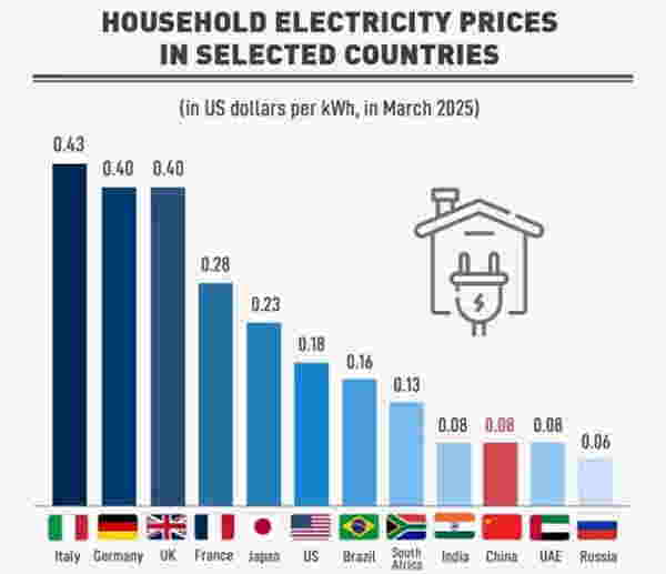 以下は世界主要国の家庭向け電気料金との翻訳(英語・日本語)である。