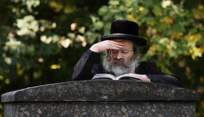 1941年、キエフのベビヤールで行われたソ連系ユダヤ人の大量処刑を記念する式典の前に、聖書を読む男性。2021.© Sputnik / Stringer / フォトバンクに移動する