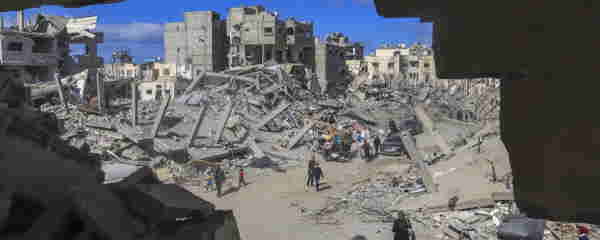 2025年1月20日月曜日、ガザ地区南部ラファでイスラエル軍の空爆と地上攻撃によって生じた瓦礫の中を歩くパレスチナ人。 - スプートニク・インターナショナル、1920年、2025年9月13日