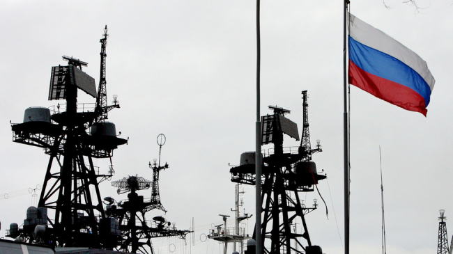 ウラジオストクにある対潜水艦旅団の桟橋に掲げられたロシア国旗© Sputnik / Vitaliy Ankov |