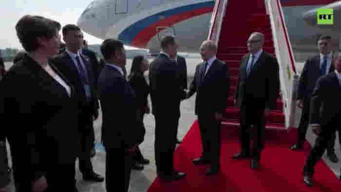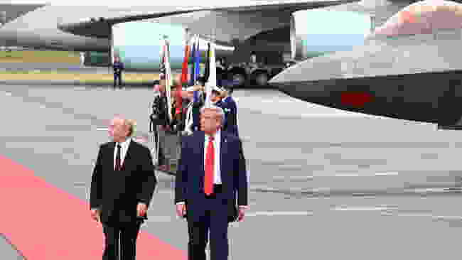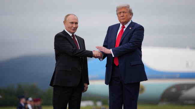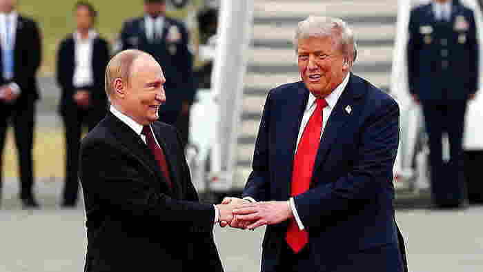 2025年8月15日、米国アラスカ州で、ドナルド・トランプ米大統領との共同記者会見で発言するロシアのウラジーミル・プーチン大統領。© RT ◆トランプ、プーチンとの「温かい」会談を称賛米国大統領は、ロシア大統領と「多くの点で合意した」と述べた Trump praises ‘warm’ meeting with Putin. The US president has said he and his Russian counterpart “agree on a lot” #8206 RT 2025年8月15日、アラスカ州アンカレッジのエルメンドルフ・リチャードソン合同基地に到着したロシアのウラジーミル・プーチン大統領を、ドナルド・トランプ米大統領が迎える。©