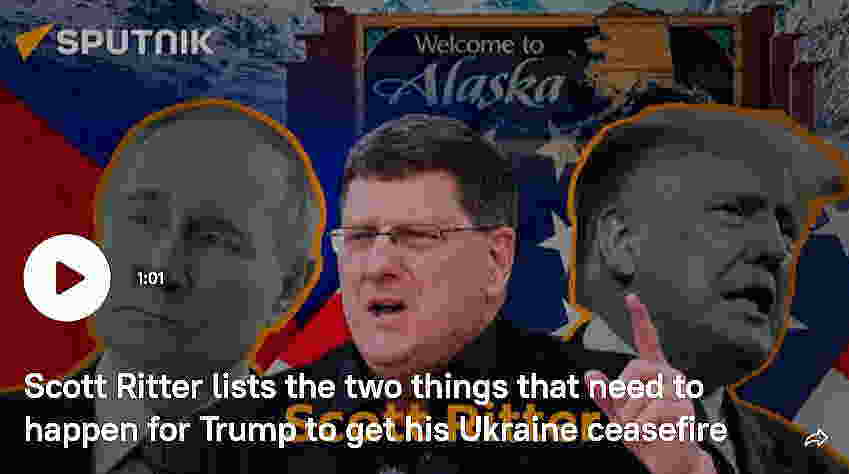 Getty Images◆ゼレンスキーは「合意を結ぶべき」とトランプ大統領米国大統領は、ロシアのウラジーミル・プーチン大統領とウクライナ大統領との会談を仲介する用意があることを示唆した Zelensky should ‘make a deal’ – Trump. The US president signaled he was ready to facilitate talks between Russian President Vladimir Putin and the Ukrainian leader #8205 RT ドナルド・トランプ米大統領。© Getty Images◆スコット・リッターは、トランプ大統領がアラスカ首脳会談で停戦を実現するために必要な2つの事柄を挙げている Scott Ritter Lists Two Things That Need to Happen for Trump to Get His Ceasefire at Alaska Summit#8204 Sputnik INTERNATIONAL スコットリッターへのインタビュー <動画>からのスクリーンショット ©スプートニク◆「次回はモスクワで」 ? プーチン、トランプ大統領に首脳会談後の記者会見で、ロシア大統領 は英語に切り替え、米大統領に提案した ‘Next time in Moscow’ – Putin to Trump. The Russian president switched to English to pitch the idea to his US counterpart at the press conference following the summit #8203 RT アラスカでの共同記者会見でのロシアの・プーチン大統領と米国の・トランプ大統領 © RIA◆ウクライナ紛争の永続的な解決が不可欠 - プーチン大統領ロシア大統領は、持続可能な解決を達成するためには、敵対行為の根本原因すべてに対処する必要があると述べた Lasting settlement essential in Ukraine conflict – Putin All of the root causes of the hostilities must be addressed for a sustainable resolution to be achieved, the Russian president said #8202 RT アンカレッジの共同記者会見の様子 © RT◆プーチンとトランプ直接会談の理由 歴史は、首脳会談が世界を変えることはめったにない Why Putin and Trump had to talk in person History shows summits rarely change the world – but this one might prevent disaster #8201 RT 資料写真:ドナルド・トランプ米大統領とウラジーミル・プーチンロシア大統領。© BPA via Getty Images