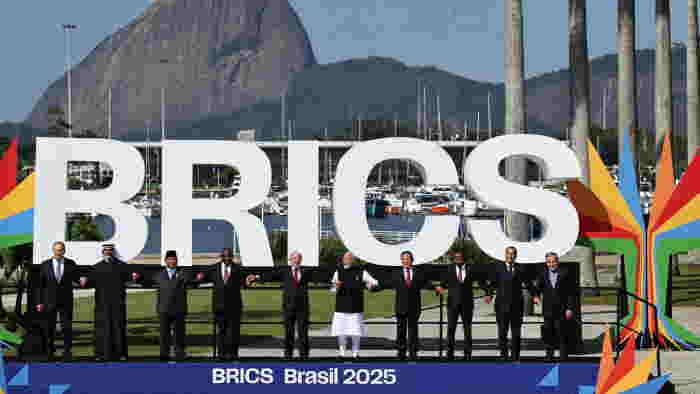 写真 / 複製 X/@nikolas_dm◆「最初の数分で全てが明らかになるだろう」 トランプ大統領、プーチン大統領との会談について ドナルド・トランプ氏は、アラスカで予定されているウラジーミル・プーチン大統領との会談を序論的なものと位置付けた президента России завершить конфликт на Украине и рассчитывает на встречу Владимира Путина с Владимиром Зеленским. Главные заявления господина Трампа ? в подборке ≪Ъ≫. #8147 kommersant ドナルド・トランプ米大統領 写真:アナベル・ゴードン/ロイター◆特集:BRICS+ プーチン・トランプ首脳会談を前にBRICSが強化 BRICS Strengthens Itself Ahead of Putin-Trump Summit #8148 Sputnik International 第17回BRICS首脳会議参加者の集合写真に写るロシア外務大臣セルゲイ・ラブロフ氏(左) - スプートニク・インターナショナル、2025年8月11日