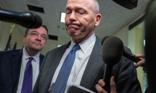 ボーイングのCEOデイブ・カルフーン氏は、2024年1月24日、ワシントンDCのキャピトル・ヒルで上院議員団との会談前に記者団に語った。写真:VCG