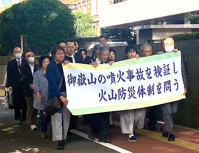 2024年10月21日(月)午後2時、控訴人らは、「御嶽山の噴火事故を検証し、火山防災体制を問う」という横断幕をもって、東京高裁前を行進し、控訴審判決に臨んだ。