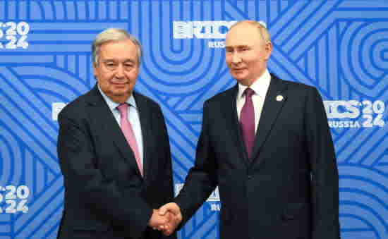 アントニオ・グテーレス国連事務総長とロシアのウラジーミル・プーチン大統領 クレムリン.ru