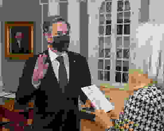 国務省にて国務長官としての宣誓を行うブリンケン(2021年1月26日)