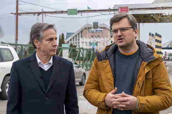 3月5日にはポーランドとウクライナの国境地帯でウクライナのクレバ外相と会談した。クレバ外相によればウクライナへの武器供与・ロシアへの経済制裁について意見を交わしたという。共同記者会見でブリンケンは「私が今、クレバ氏とウクライナに立っているように、全世界はウクライナと共にある。」と強調し、ロシアへの制裁は「具体的な成果が上がっている。」と指摘した上で「圧力は今後も続くだけでなく、戦争が終わるまで強まることだろう。」と宣言した[76]。同日に中国の王毅外交部長と電話会談し、「世界はどの国が自由や民族自決、主権といった基本的原則のために立ち上がるか注視している。」と述べ、中国にロシア寄りの姿勢を改めることを要求した[77]。
