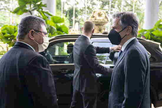 その後中国には立ち寄らずアメリカへ帰国した。しかし中国側から会談要請があり、帰りの途上に立ち寄ったアメリカのアラスカ州で会談に応じた[61]。昨年6月に当時のポンペオ国務長官と楊がハワイで米中外交トップ会談を行っており、外交上の相互主義の原則に従うなら、今回は中国で行われる必要があったが、そうはならなかった[62]。