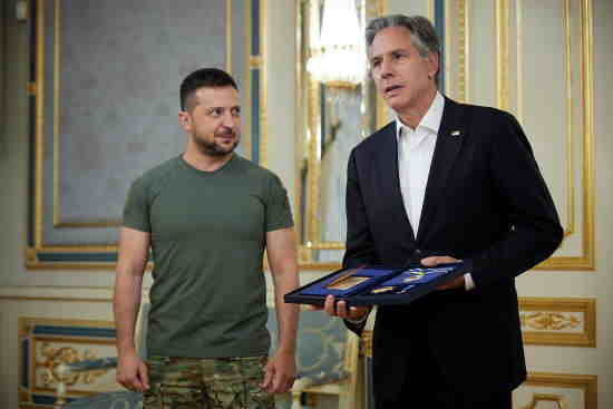 4月24日、ロシアによる爆撃を受ける危険性が残る中、オースティン国防長官とともに鉄路でウクライナの首都キーウを極秘裏に訪問。大統領府でゼレンスキー大統領、クレバ外相、レズニコフ国防相、モナスティルスキー内相らと会談を行った[79][80][81]。