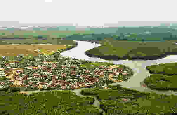 ファイル写真。ナイジェリアのポートハーコート近郊にあるナイジェリア石油埋蔵地、ニジェールデルタのマングローブ湿地帯にある大きな村。© ジェイコブ・シルバーバーグ/ゲッティイメージズ