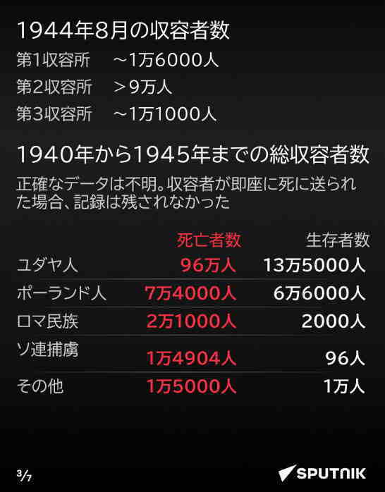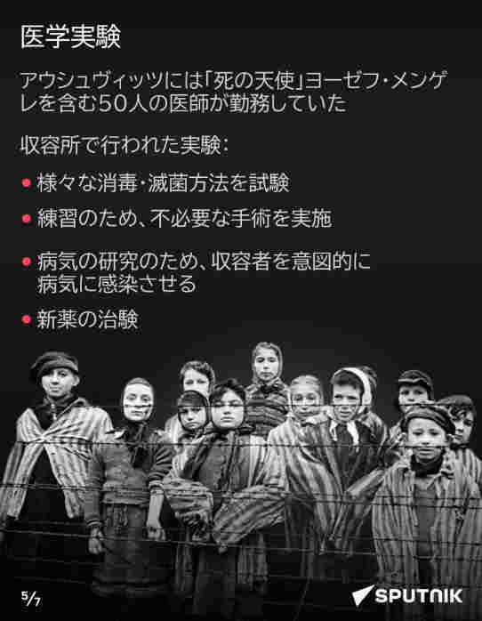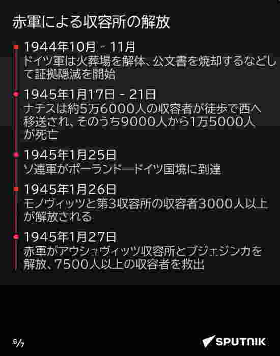 1945年1月27日、ソ連赤軍はナチス占領下のポーランド南部オシフィエンチム近郊にあったアウシュヴィッツ強制収容所を解放し、ナチスによる非人道的な医学実験の数々の痕跡を世界に明らかにした。解放から節目の80年を迎えた今、スプートニクがインフォグラフィックで詳細を振り返る。