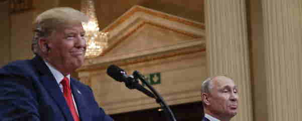 ヘルシンキでの会談中の当時の米国大統領ドナルド・トランプ氏(左)とロシアのウラジミール・プーチン大統領。フィンランド、2018年7月16日(ファイル写真) - スプートニク・インターナショナル、1920年、2025年2月18日