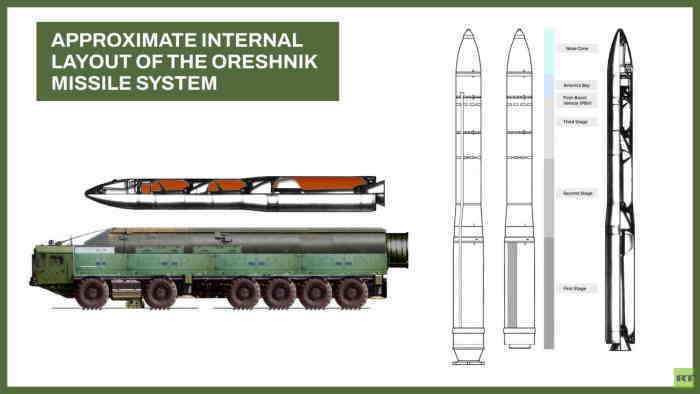 <図:オレシュニクミサイルの想定される内部レイアウト構造>
