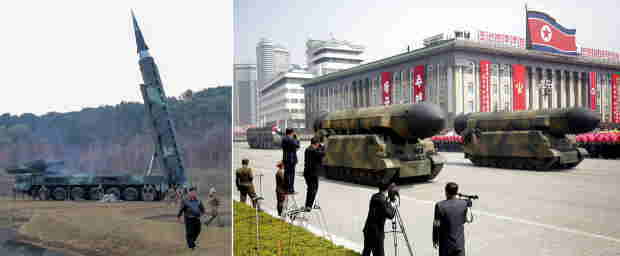 RT (L) 火星-16B。 (R) 北極星-2。 ©kcna.kp; AP写真/ウォン・メイイー