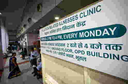 2025年11月3日、インド・ニューデリーのRML病院「汚染関連疾患クリニック」の外観。© Sanchit Khanna/Hindustan Times via Getty Images