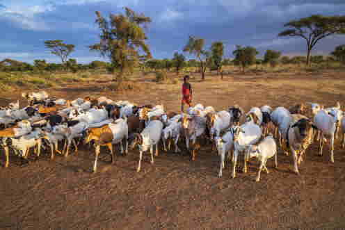 RT ヤギと遊ぶ若いマサイの少年、ケニア。 © Getty Images/hadynyah