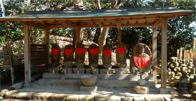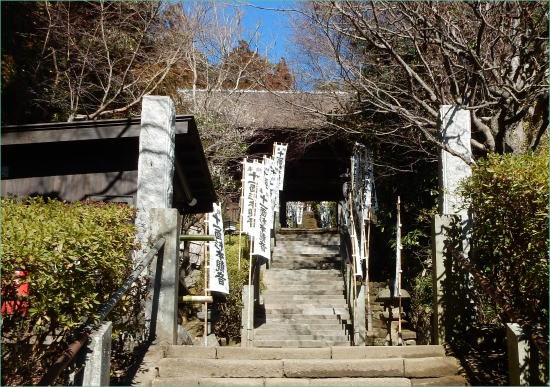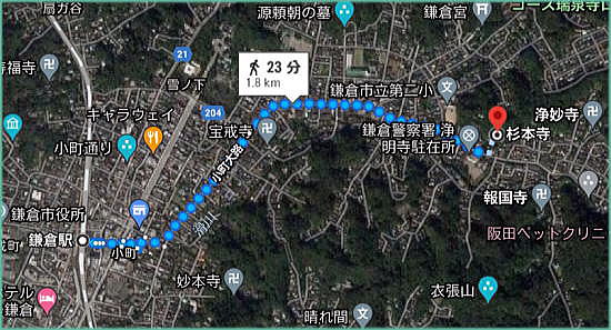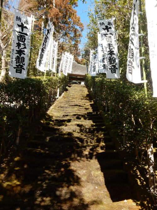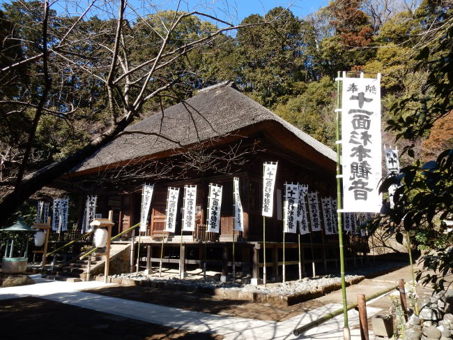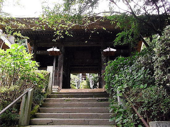 杉本寺(すぎもとでら)は、神奈川県鎌倉市二階堂にある天台宗の寺院。山号は大蔵山。本尊は十一面観音で、坂東三十三箇所・鎌倉三十三箇所の第1番札所である。鎌倉最古の寺とされ、参道途中に苔むした石段があることでも知られている。法性寺 山王権現祠 妙光寺 岩殿寺 昼食 杉本寺 浄妙寺 長勝寺 実相寺 光明寺 アクセス 杉本寺(天台宗、鎌倉最古) 鎌倉市二階堂903 今回、私達は逗子マリーナ近くの食堂で昼食をとったあと、鎌倉市の杉本寺に車で到着した。 電車+徒歩の場合は、横須賀線(JR東日本)鎌倉駅から徒歩約23分である。横須賀・総武快速線のほか、湘南新宿ライン(宇都宮・横須賀系統)も発着する。 以下の地図では、地図中、左側に横須賀線、湘南新宿ラインが見える。 なお、杉本寺の拝観料は1人当り300円。 ![]() 出典:グーグルマップ 下は杉本寺の参道。両側に十一面杉本観音の白い旗が林立している。 ![]() 杉本寺の参道 (現在、この苔むす参道は苔と石段をまもるため通行禁止となっています) 撮影:池田こみち Nikon Coolpix S9900 2022-2-18 杉本寺の山門と観音堂の屋根は茅葺きとなっており、概ね25年毎に葺き替えを行うとのことで、参拝者に葺き替え協力寄進をお願いしていた。 ![]() 杉本寺 境内案内図 撮影:青山貞一 Nikon Coolpix S9900 2022-2-18 ![]() 杉本寺 山門て前の池田こみち 撮影:青山貞一 Nikon Coolpix S9900 2022-2-18 ![]() 杉本寺 山門 撮影:池田こみち Nikon Coolpix S9900 2022-2-18 ![]() 杉本寺 山門 Spource:Wikimedia Commons: < CC 表示-継承 4.0, リンクによる 杉本寺 概要 歴史 731年(天平3年)東国の旅をしていた行基(ぎょうき)が、ここが観音様を祀る場所にふさわしいと考え、自ら彫った十一面観音を安置したことから始まり、734年(天平6年)、光明皇后が観音菩薩のお告げにより東国の治安の安定を願い、右大臣藤原房前と行基に本堂を建立させたと伝わる。 仁寿元年(851年)に円仁(慈覚大師)が参詣し十一面観音菩薩を自ら刻み安置し、寛和2年(986年)花山法皇の命により源信(恵心僧都)が十一面観音菩薩を自ら刻み安置し、その後花山法皇が巡礼したと伝わる。 寺伝によると治5年(1189年)堂宇が焼失しているが、このとき観本尊の音像三尊がら本堂から出て、境内にの大杉のしたに難したとことから杉の本の観音と呼ばれるようになったと伝わる。 『吾妻鏡』によれば、中世には大倉観音堂と呼ばれ、文治5年(1189年)の火災時には別当浄台房が炎の中から本尊を持ち出し無事であったされる。同書には建久2年(1191年)源頼朝が当寺を参拝し、修理料を寄進したとあり、その時に、御前立の十一面観音菩薩像を寄進したとされる[4]。 背後にはかつて杉本城があり、足利方の武将で鎌倉府執事を務めた斯波家長(?-1337年)が拠ったが、南朝方の北畠顕家に攻められ、この寺で自害している。 ![]() 出典:杉本寺 入場時配布資料 境内 ![]() 杉本寺境内案内図 杉本寺 公式Web 金沢街道から石段を上った先に山門(仁王門)が建ち、さらに上ったところに本堂(観音堂)が建つ。山門から本堂へ上る正面の鎌倉石の石段はすり減って苔むしており通行禁止で、参拝者は左側の新しい階段を使用する。 本堂の裏山は杉本城跡であり、本堂右手前には杉本城の戦いで戦死した斯波家長と一族の供養塔とされる石塔群がある。鎌倉地域でみられる「やぐら」とよばれる横穴がある。 山門(仁王門):切妻造、茅葺の八脚門。左右に金剛力士(仁王)像を安置する。江戸時代、18世紀半ば頃の建立。 観音堂(本堂):寄棟造、茅葺、方五間(正面側面とも柱間が5間)の密教仏堂である。棟札から延宝6年(1678年)の建立と判明する。桁行5間、梁間5間、寄棟茅葺。内・外陣に分かれる中世密教本堂形式である[6]。堂内に多数の仏像を安置する。 仏像 秘仏 十一面観音立像(3躯):本尊として3躯の十一面観音立像を安置し、中央と左(向かって右)の像は国の重要文化財に指定されている。 3尊の観音像は格子戸の奥に安置されている秘仏で、通常は拝観はできないが、毎月1日と18日に開帳される。 左の像(向かって右)は像高142センチメートルで、寄木造、漆箔仕上げで、源信(恵心僧都)作と伝承されるが、実際の制作年代は鎌倉時代である。 中央の像は、像高166.7センチメートルで、寄木造、漆箔仕上げで、円仁(慈覚大師)作と伝承され、衣文に平安時代風を残すが、鎌倉時代に入っての作とみられる。 右の像(向かって左)は、像高153センチメートルで、行基作と伝承されるもので、素木の一木造であり、3体の中ではもっとも古様で、平安時代末期の作と推定される。作風は素朴で、ノミ痕を残す部分もあり、専門の仏師ではない僧侶の作かと推定されている。伝説に基づき「覆面観音」「下馬観音」の別称がある。伝説として、礼節を欠き、信心無く馬に乗ったまま杉本寺の門前を通ろうとすると必ず落馬したため、蘭渓道隆(大覚禅師)がこの観音像の顔を袈裟で覆ったところ、落馬する者はいなくなったとの伝承から、前述の別称が生じた。 本尊前立 十一面観音像:源頼朝の寄進で、伝・運慶作。 脇立 不動明