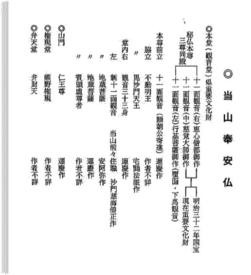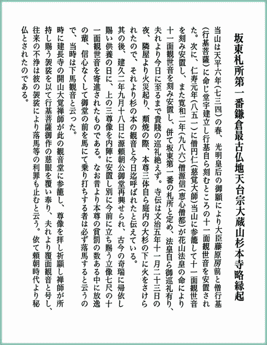 文化財 ・国指定重要文化財 木造十一面観音立像 - 指定年月日:1899年(明治32年)8月1日。 伝・円仁(慈覚大師)作。 ![]() 木造十一面観音立像のスケッチ図 出典:yorimoto-japan.com 木造十一面観音立像 - 指定年月日:1899年(明治32年)8月1日。 伝・源信(恵心僧都)作。 ・神奈川県指定文化財 観音堂(本堂) - 指定年月日:昭和52年11月18日。棟札に延宝6年(1678年)とある。 ![]() 出典:杉本寺 入場時配布資料 浄妙寺へつづく |