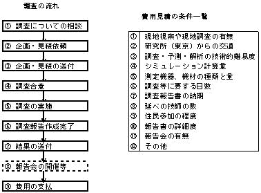 ERIでは、顧客からの依頼(FAX、E−MAIL、電話、手紙等)にもとづき無料で調査の費用を見積もります。見積依頼に際して以下を考慮します。いずれの場合も住民団体,NGO特別費用で対応しますので気軽にご相談下さい。