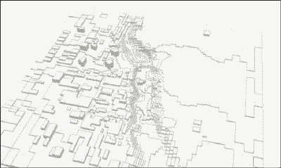 次に、地域の地形、建築物、構造物の3次元データを作成する。以下は、厚木基地及びその周辺地域の3次元データの一部である。