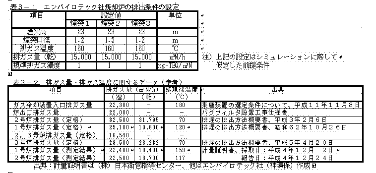 表3 厚木基地産廃焼却炉排ガス中ダイオキシン類濃度の推定結果 排ガス濃度の単位:ng-TEQ/m3N