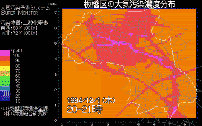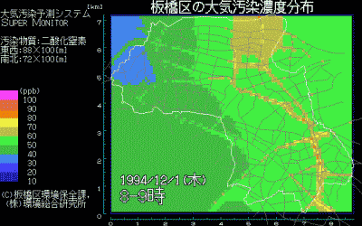 大気環境リアルタイムシミュレーションシステム表示画面の例