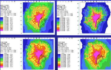 | 昭和49年から平成6年までの東京23区の二酸化窒素大気汚染の再現シミュレーションは環境総合研究所実施、東京地裁に証拠提出したものの一部です。 |