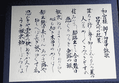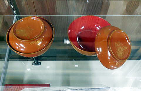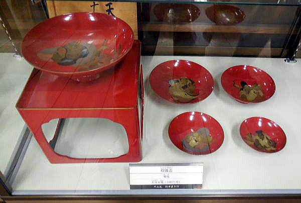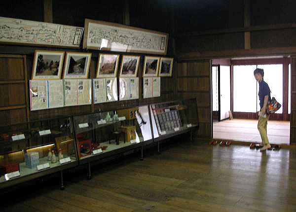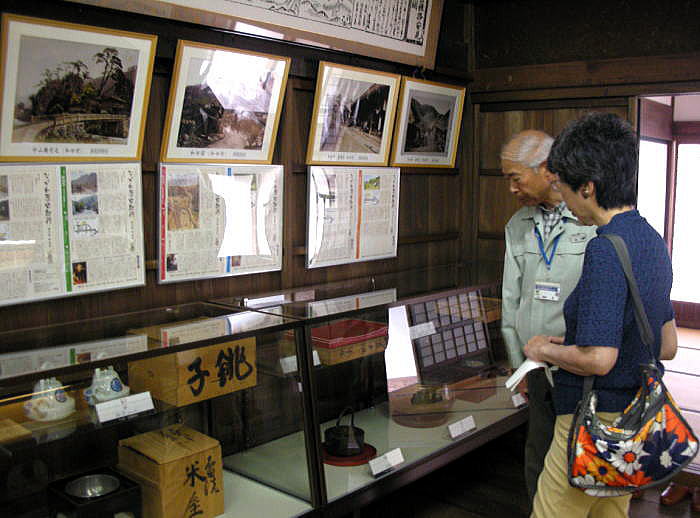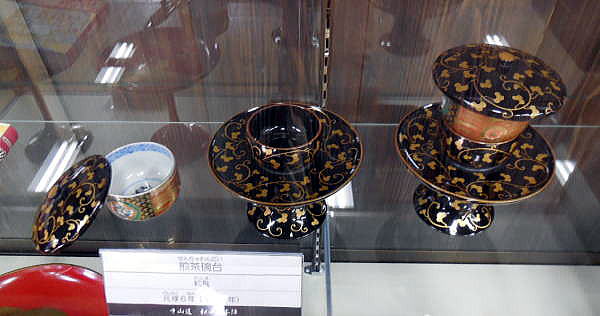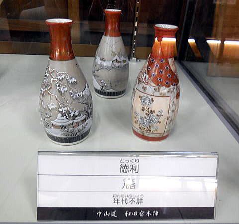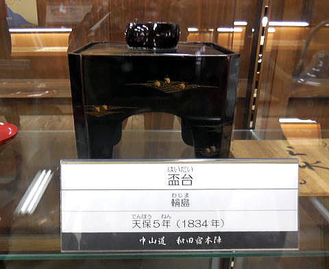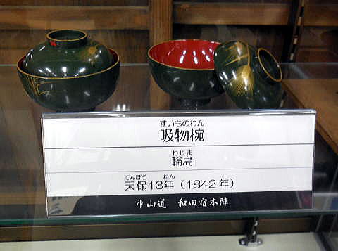 ◆和田宿本陣(什器など) ![]() 出典:中山道和田宿 長和町教育委員会、長和町産業振興課 下の写真は、和田宿で行われた皇女和宮御降行列を模倣して行われた「村制111年記念皇女和宮御降嫁行列 本陣献茶の儀」の行事の一部ですが、皇女らに茶を振る舞っている様子が分かります。 宿泊、滞在中は、当然、本陣で食事などの飲食も行われているはずです。 ![]() 撮影:青山貞一 Nikon Coolpix S8 2015-5-4 下は皇女和宮様、御下向道中詠歌です。 ![]() 撮影:池田こみち Nikon Coolpix S6400 2015-5-4 ここでは、次に、和田宿本陣で使われたさまざまな什器などを紹介します。本陣には皇女和宮一考だけでなく、参勤交代時の武士、おつきの者らに使われた什器なども保存されています。 下の写真は、私達に説明をしてくださった和田宿の学芸員のひとりです。和田宿の本陣には、 ![]() 撮影:青山貞一 Nikon Coolpix S8 2015-5-4 これらの什器の多くは、和田宿の問屋「米屋」が本陣、脇本陣などに貸し出していたようです。 ![]() 撮影:青山貞一 Nikon Coolpix S8 2015-5-4 下の写真は什器などが展示されている板の間です。食器などはわざわざ、輪島や九谷から取り寄せたことが分かります。 ![]() 撮影:青山貞一 Nikon Coolpix S8 2015-5-4 下は食事に使われた重箱です。 ![]() 撮影:青山貞一 Nikon Coolpix S8 2015-5-4 下はその拡大写真です。漆塗りの重箱は、金沢などの職人によって作られたようです。 ![]() 撮影:池田こみち Nikon Coolpix S6400 2015-5-4 ![]() 撮影:池田こみち Nikon Coolpix S6400 2015-5-4 下はお吸い物などのお碗です。 ![]() 撮影:池田こみち Nikon Coolpix S6400 2015-5-4 以下も吸物椀です。天保13年、輪島とあります。輪島塗(わじまぬり)とは石川県輪島市で生産される漆器です。 ![]() 撮影:池田こみち Nikon Coolpix S6400 2015-5-4 下はお酒を頂く際の杯です。 ![]() 撮影:池田こみち Nikon Coolpix S6400 2015-5-4 下はいわゆる銚子です。 ![]() 撮影:青山貞一 Nikon Coolpix S8 2015-5-4 下は徳利(とっくり)です。年代は不詳ですが、九谷とあります。九谷焼(くたにやき)は、石川県南部の金沢市、小松市、加賀市、能美市で生産される色絵の磁器です。 ![]() 撮影:池田こみち Nikon Coolpix S6400 2015-5-4 下は盃台です。天保5年、輪島とあります。輪島塗(わじまぬり)とは石川県輪島市で生産される漆器です。 ![]() 撮影:池田こみち Nikon Coolpix S6400 2015-5-4 下は菓子入れなどです。 ![]() 撮影:青山貞一 Nikon Coolpix S8 2015-5-4 下は、菓子などを載せた什器です。 ![]() 撮影:池田こみち Nikon Coolpix S6400 2015-5-4 下は和茶の茶碗のようです。すごく立派なものです。 ![]() 撮影:池田こみち Nikon Coolpix S6400 2015-5-4 什器以外にも、いろりやかまどなどを当時のままで見ることが出来ました。下はいろりです。 ![]() 撮影:青山貞一 Nikon Coolpix S8 2015-5-4 つづく |