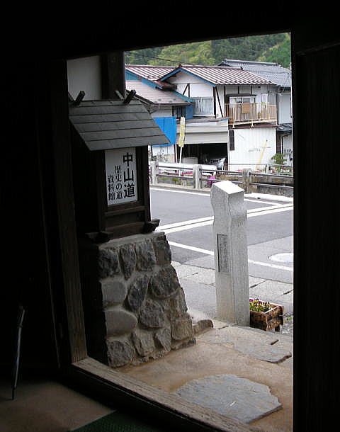 下はもともと旅籠の「かわちや」の外観です。 ![]() 撮影:青山貞一 Nikon Coolpix S8 2015-5-4 下は隣を流れる追川側から撮影した「かわちや」です。 ![]() 撮影:青山貞一 Nikon Coolpix S8 2015-5-4 下は「かわちや」の1階です。 「かわちや」という看板には、それなりの意味があります。 ![]() 撮影:青山貞一 Nikon Coolpix S8 2015-5-4 下は入り口にあった「中山道」と彫られた石碑です。 ![]() 撮影:青山貞一 Nikon Coolpix S8 2015-5-4 下は「かわちや」の入り口です。 ![]() 撮影:青山貞一 Nikon Coolpix S8 2015-5-4 下は「かわちや」の入り口から入る池田こみちです。 ![]() 撮影:青山貞一 Nikon Coolpix S8 2015-5-4 下の写真は、「かわちや」から外をみたところです。 ![]() 撮影:青山貞一 Nikon Coolpix S8 2015-5-4 下は「かわちや」の一階の入り口と板の間です。 ![]() 撮影:青山貞一 Nikon Coolpix S8 2015-5-4 下は「かわちや」の一階の居室です。一部屋8畳が基本となっています。畳の並べ方が本陣の場合と異なることがわかります。 ![]() 撮影:青山貞一 Nikon Coolpix S8 2015-5-4 下はかわちや、歴史の資料館で丁寧、親切にご説明頂きました学芸員の方です。 ![]() 撮影:青山貞一 Nikon Coolpix S8 2015-5-4 ![]() 撮影:青山貞一 Nikon Coolpix S8 2015-5-4 下も一階です。奥に見える木戸は、公家の泊まり客がが入る門のようです。 ![]() 撮影:青山貞一 Nikon Coolpix S8 2015-5-4 下は一階の中山道側にある部屋から見たものです。 これは上述しました公家が旅籠に宿泊する場合の専用の入口と玄関とのことです。 ![]() 撮影:池田こみち Nikon Coolpix S6400 2015-5-4 下の写真は上記を中山道側から見たものです。この門から旅籠に入ったのです。 ![]() 撮影:青山貞一 Nikon Coolpix S8 2015-5-4 下は廊下の写真です。 ![]() 撮影:青山貞一 Nikon Coolpix S8 2015-5-4 下は2階部分です。板の間になっています。往事は、ここに泊まり客が雑魚寝したそうです。原則として個室はなく、二階の板張りの部屋には大勢が入れられ、ついたてなどの仕切りをして区切っていました。 ![]() 撮影:青山貞一 Nikon Coolpix S8 2015-5-4 下は2階の窓です。格子が入っています。二階の部屋の窓には狭い格子が入れてあり、客に逃げられないようにしているからだと学芸員はお話しされました。 ![]() 撮影:青山貞一 Nikon Coolpix S8 2015-5-4 下は二階からかわちやの隣を流れる追川を見た写真です。左側に山が迫っているのがよく分かります。 ![]() 撮影:青山貞一 Nikon Coolpix S8 2015-5-4 下は2階にあった看板です。 実は「かわちや」という看板は中山道の京都側に向けて、また「河内屋」という漢字の看板は江戸に向けて設置したと、学芸員の方が説明してくれました。その理由は、京都は仮名文化が広く普及しており、それに対して江戸は、武士の社会で漢字を使う方が自然だったという背景があるとのことです。今では、あまりそうしたことを配慮せず、カンバンの向きもそれぞれ各家で勝手にかけている状況のようです。 ![]() 撮影:青山貞一 Nikon Coolpix S8 2015-5-4 つづく |