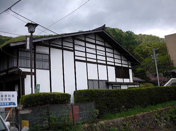 ◆和田宿 かわちや・歴史の道資料館(建物・部屋) 下の地図では、ほぼ真ん中、追川の左側にBかわちやがあります。 ![]() 出典:中山道和田宿 長和町教育委員会、長和町産業振興課 大黒屋の次は、かわちや・歴史の道資料館です。下の地図にあるように、かわちやは中山道をはさみ大黒屋・下の問屋の反対側にあります。またすぐ隣を追川が流れています。 ![]() 出典:歴史の道「中山道」資料館 ![]() 出典:中山道和田宿 長和町教育委員会、長和町産業振興課 かわちやは、文久元年(1861年)の大火で焼失(和田宿内では本陣、脇本陣を含め109戸が全焼した。)しましたが、”かわちや”もこのとき急きょ再建された建物のひとつです。 建物は、切妻、平入、金属板葺、中山道の町屋でよく見られる出桁造りで、格子戸など江戸時代末期に建てられた旅籠建築の遺構として貴重な存在なことから現在は、修復工事が行われ内部が「歴史の道資料館」となっています。 下の解説は長和町のWeb、歴史の道資料館「かわちや」からです。