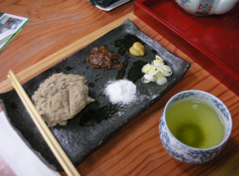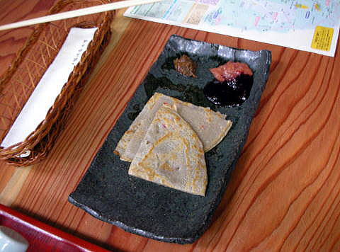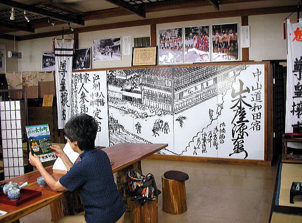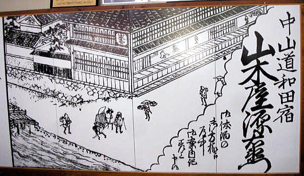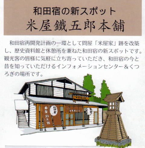 以上、紹介してきましたように皇女和宮が京都から江戸に中山道で降嫁することに関連し、和田宿では大火にもかかわらず、本陣、脇本陣はじめ宿場の諸施設を再造築しました。そのこともあり、現在に至るまで諸施設が中山道の長野県内の他の宿に比べ、原形をとどめており、観光客にまた私達のような研究者にとって貴重な存在となっていると感じました。 ところで、一通り現地視察を終えた後、一服しようと中山道沿いで飲食できる店を探しましたが、羽田野(かあちゃん家)が閉まっていました。そうこうしているうちに、中山道沿いに本陣から西に少し行ったところに、米屋鐵五郎本舗というお休みどころ(茶屋)を見つけました。 ![]() 出典:中山道和田宿 長和町教育委員会、長和町産業振興課 下がその米屋鐵五郎本舗です。 ![]() 出典:中山道和田宿 長和町教育委員会、長和町産業振興課 何でも、米屋鐵五郎本舗は、和田宿再開発計画の一環として問屋「米屋家」跡を改築し、歴史資料館と休憩所を兼ねた和田宿の新スポットとということで、せっかくなので、米屋鐵五郎本舗に寄ってみました。 下はその米屋鐵五郎本舗のパンフレットの表紙にあった写真です。おそらく大黒屋から羽田野側を撮影した写真に江戸時代の中山道を行く人々を重ねたものですが、非常にすばらしい写真です。 中山道には皇女和宮の一行から参勤交代の一行だけでなく、士農工商を問わず多くの人々が往来したに違いなく、その風景が以下の写真によく表現されています。 ![]() 出典:中山道和田宿 長和町教育委員会、長和町産業振興課 この「米屋鐵五郎」では下記の3つの事業を柱として、事業展開しているそうですが、たとえば「田舎暮らしをお考えのお客様に確かな情報を提供し、快適な暮らしをご提案します」とあります。 ・別荘暮らし支援 別荘をお探しですか? 長和町にはたくさんの別荘地があります。条件の合うところが必ず見つかります。 ・田舎暮らし支援 古民家をお探しですか? 田舎暮らしにちょうどいい、中山道和田宿周辺・田園地域の田舎景観地・菜園付き古民家等をご案内いたします。 下の写真は「米屋鐵五郎本舗」前で撮影した池田こみちです。 ![]() 撮影:青山貞一 Nikon Coolpix S8 2015-5-4 店は和田宿のインフォメーションセンターとなっており、さまざまな情報がパンフレットなどとしておいてあります。また下の写真にあるように写真や文物の展示、掲示もあります。 ![]() 撮影:青山貞一 Nikon Coolpix S8 2015-5-4 ![]() 撮影:池田こみち Nikon Coolpix S6400 2015-5-4 また喫茶コーナーがあり、「そばがき」や「そばクレープ」「ガレット」などこの地方ならではの食べ物もいただくことができます。なかなかの珍味で美味です。そばがきは、その昔、長野県庁に特別公務員で毎週通っていたとき、戸隠のそば屋でよく食べました! 下の「そばがき」や「そばクレープ」は、お塩、味噌、マスタード、ネギなどをつけていただきます。・ ![]() 撮影:青山貞一 Nikon Coolpix S8 2015-5-4 ![]() 撮影:青山貞一 Nikon Coolpix S8 2015-5-4