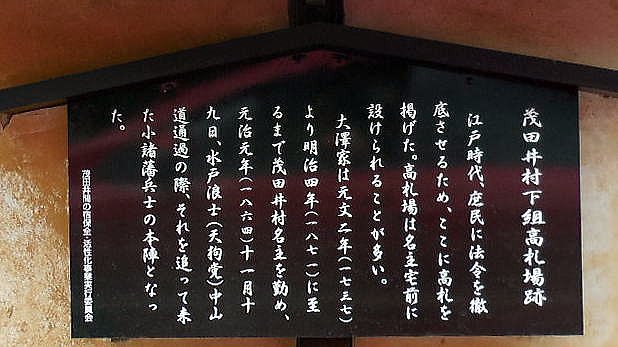 ![]() 撮影:池田こみち Nikon Coolpix S6400 2015-5-4 ![]() 撮影:池田こみち Nikon Coolpix S6400 2015-5-4 下は茂田井の高札場跡です。 ![]() 撮影:池田こみち Nikon Coolpix S6400 2015-5-4 ![]() 撮影:池田こみち Nikon Coolpix S6400 2015-5-4 下は上の「茂田井村下組高札場跡」に書かれている内容です。