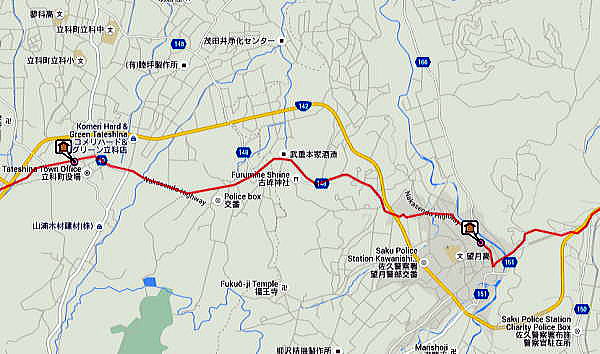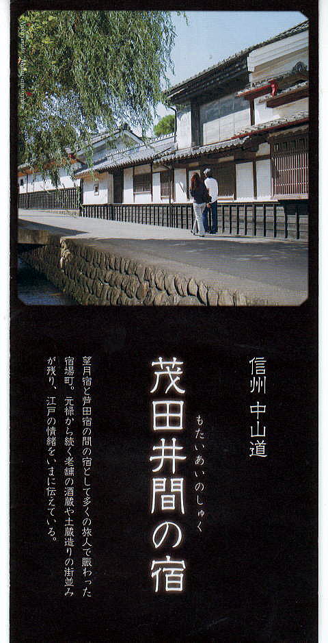 ◆茂田井宿 芦田宿を後に、私達は茂田井宿に向かいました。茂田井も立科町にあります。 ![]() 撮影:青山貞一 Nikon Coolpix S8 2015-5-4 下の地図では、赤い線が旧中山道、黄色の142号線が国道(中山道)です。地図では左にある宿が芦田宿、右側にある宿が望月宿、その中央に茂田井宿がありました。 ![]() 左が芦田宿、右が望月宿、その中央に茂田井宿がありました 出典:中山道六十九次 旧中山道地図 旧街道地図 良質米の産地茂田井間の宿 茂田井間の宿(もたいあいのしゅく)は村高九百六十七石六斗八合。江戸から数えて四十五里二十六町十四間、往還通りの長さ二十一町二間の宿場です。 茂田井間の宿は望月宿・芦田宿で対応できない大通行の際に、「間の宿」として使われていました。 茂田井地方は良質米の産地として名をはせており、小諸藩主や家臣らは茂田井産の米のみを毎年江戸まで輸送させたほどでした。 そのような良質米の産地にふさわしく、造り酒屋二軒があります。 歌人若山牧水は望月に歌友が多く、吟客として逗留したという。宿のかたわらには牧水の歌碑があります。 ![]() 出典:現地入手のパンフ表紙 茂田井宿(もたいしゅく) 長野県佐久市、中山道の望月宿と芦田宿の間にある間の宿です。今でも国道より外れて古い土蔵などがならぶ昔の面影が色濃く残る宿場です。 しかし、茂田井宿は中山道の宿場リストにはありません。これは、幕府から認められた宿ではなかったからです。 江戸時代、幕府は宿場以外での旅人の宿泊を禁じていたので、茂田井宿は他の宿場と趣を異にしています。 茂田井宿には武重本家酒造と大澤酒造という二つの蔵元があります。大澤酒造は茂田井村の名主を代々勤めた家柄で、1689年(元禄2年)より酒造を始めました。 武重本家酒造の裏に映画「たそがれ清兵衛」のオープンセットが作られ、撮影が行われています。 ![]() 撮影:青山貞一 Nikon Coolpix S8 2015-5-4