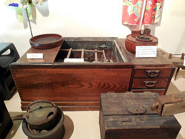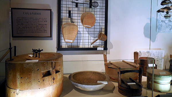 ◆「人々のくらしと伝統」 江戸後期から明治時代のくらし、仕事、祭り、そして当地域で盛んであった養蚕・蚕糸業をテーマに展示しています。 【くらし】人々のくらしで、当たり前に日常的につかっていた生活用具を展示しています。なつかしい品々が並んでいます。 【仕事】仕事には、田、畑、山、川などで行われていたさまざまなものがあり、そこには必要な道具があります。今は使われていない道具や、地場産業の鉄平石の切り出しと加工に使った道具などを展示しています。 【祭りと芸能】佐久地域には、古くから続く多くの民俗芸能が残されています。当地を代表する榊祭りの神輿や獅子頭、また、五穀豊穣を願う根神社式三番叟の衣装を展示しています。 【養蚕・製糸】蚕を飼い、糸を紡ぎ、布を織っていた家内労働的な仕事も、明治時代になると製糸業として主要な産業となり、地域の経済に大きく貢献してきました。その足跡を資料で紹介しています。 【くらし】 下は民家のくらしを再現しています。たんす、いろりなどがあります。 ![]() 撮影:池田こみち Nikon Coolpix S6400 2015-5-4 江戸後期の生活の模様が描かれています。 ![]() 撮影:青山貞一 Nikon Coolpix S8 2015-5-4 下は鼈甲細工による女性のかんざしと櫛です。 ![]() 撮影:池田こみち Nikon Coolpix S6400 2015-5-4 ![]() 撮影:池田こみち Nikon Coolpix S6400 2015-5-4 ![]() 撮影:池田こみち Nikon Coolpix S6400 2015-5-4 下は下駄、草履です。 ![]() 撮影:池田こみち Nikon Coolpix S6400 2015-5-4 下はおけ、ざるなどです。 ![]() 撮影:池田こみち Nikon Coolpix S6400 2015-5-4 下は、什器類です。 ![]() 撮影:池田こみち Nikon Coolpix S6400 2015-5-4 ![]() 撮影:池田こみち Nikon Coolpix S6400 2015-5-4 ![]() 撮影:池田こみち Nikon Coolpix S6400 2015-5-4 ![]() 撮影:池田こみち Nikon Coolpix S6400 2015-5-4 ![]() 撮影:池田こみち Nikon Coolpix S6400 2015-5-4 ![]() 撮影:池田こみち Nikon Coolpix S6400 2015-5-4 ![]() 撮影:池田こみち Nikon Coolpix S6400 2015-5-4 下は籠です。 ![]() 撮影:池田こみち Nikon Coolpix S6400 2015-5-4 つづく |