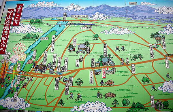 旧中山道、信州宿場探訪の2日目(2015年5月5日)は、地元の軽井沢の追分宿から昨日最後の探訪となった望月宿の次の宿である八幡宿までを探訪する琴とした。 以下が中山道六十九次の宿場リストのうち小豆色の部分が2日の視察予定の宿場です。