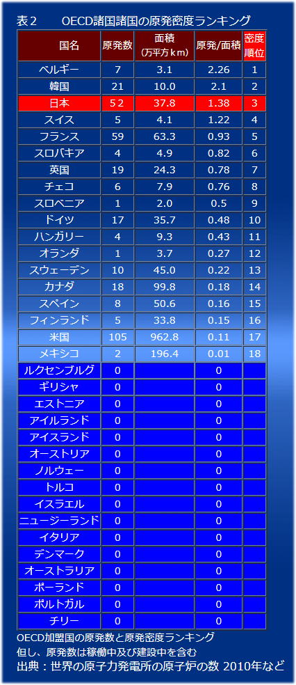 出典:世界各国の原発密度ランキングと韓国・日本