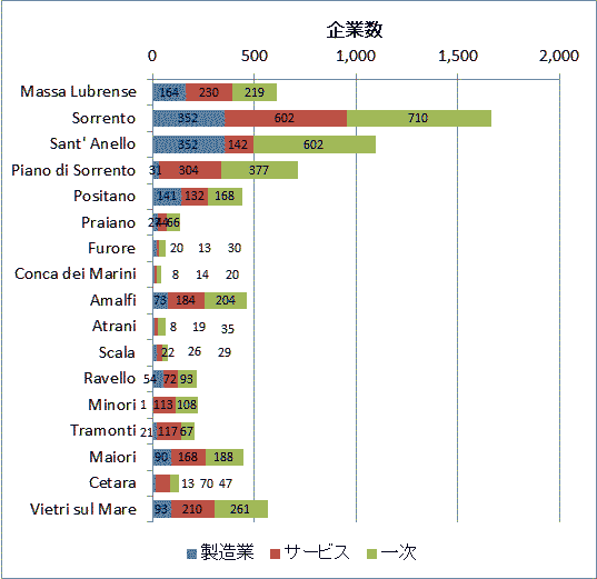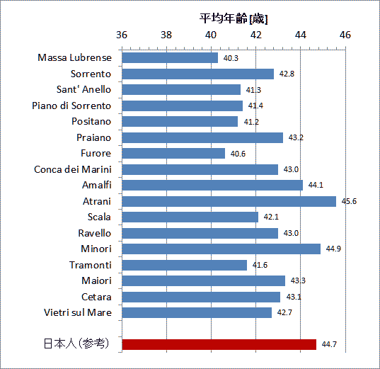 出典 http://campania.indettaglio.it/eng/province/sa/la_provincia_di_salerno.html 出典 http://www.comuni-italiani.it/065/index.html 出典 http://www.comuni-italiani.it/063/index.html ●標高と地形 図1は、表1のうち各自治体の標高を示したものである。グラフ中、0とあるのは、当該自治体の標高がゼロ、すなわち海水面を含むことを意味している。関連自治体のなかで海水面に面していないのは、スカーラ(Scala)のみであることが分かる。またどの自治体も424m~1444mの最高標高を持っていることも分かる。もっとも、高い標高をもつ自治体はポジターノ(Positano)である。 ![]() 図1 南イタリア・アマルフィ海岸自治体の標高 単位(m) 出典:青山貞一・池田こみち、南イタリア・アマルフィ海岸自治体の基礎調査データ① 図2は、調査対象となった南イタリアのアマルフィ海岸における各自治体の位置を地形図上に表示したものである。南側のティラニア海側にあるアマルフィ海岸が切り立った絶壁、崖となっていること、そこにひとつひとつ小さな自治体がへばり付いていることがよく分かる。 |