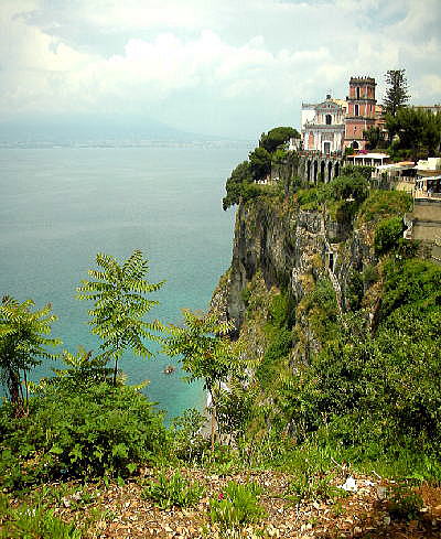 2013年アマルフィ海岸現地視察調査報告<125本 全体メニュー> アマルフィの位置 ポンペイの紋章 イタリア国旗 <訪問先別の秀逸で希有な景観(2013年6月4日ー2日目)> 最初に、訪問先別の秀逸で希有な景観を写真で紹介しましょう。ソレント半島及びアマルフィ海岸の景観は、単なる自然景観ではなく、歴史や文化に彩られた空、海、地形によってつくりだされた美しさにあります。 ◆ポンペイ(Pompei) 2013年6月4日午前 ポンペイは、西暦79年に起きたヴェスビオ火山の大噴火により、たちどころに町全体が灰の下に埋まってしまったことで有名であり、世界遺産となっています。 私達は2008年の第一回調査でポンペイを訪問し、詳細な報告を出していますので、以下をご覧下さい。 ●特集:南イタリア紀行<ポンペイ> 2008.12.30更新 ◆青山貞一・池田こみち:春まだ浅いアマルフィ海岸を行く <ポンペイ> ◆青山貞一:南イタリア紀行:①ポンペイ遺跡探訪 ソレントからポンペイへ ◆青山貞一:南イタリア紀行:②ポンペイ遺跡探訪 バジリカ・フォロ ◆青山貞一:南イタリア紀行:③ポンペイ遺跡探訪 生活・富裕家のフラスコ画 ◆青山貞一:南イタリア紀行:④ポンペイ遺跡探訪 闘技場・大体育場・娼館 ◆青山貞一:南イタリア紀行:⑤ポンペイ遺跡探訪 街路計画・排水路 ◆青山貞一:南イタリア紀行:⑥ポンペイ遺跡探訪 秘儀荘 ◆青山貞一:南イタリア紀行:⑦ポンペイ遺跡探訪 人体レリーフ 今回は、下の写真にありますポンペイ大聖堂の地上80mの鐘楼に登り、その上からポンペイの町を一望しました。 ![]() ポンペイの大聖堂にて 撮影:青山貞一 Digital Camera Coolpix S8 2013-6-4 ![]() ポンペイの大聖堂にて 撮影:青山貞一 Digital Camera Coolpix S8 2013-6-4 ![]() ポンペイ (トリップアドバイザー提供) 以下はポンペイ大聖堂における朝の礼拝(ミサ)の貴重な動画です。パイプオルガンの音も綺麗に入っています。 動画撮影:青山貞一 Victor GZ-256E 2013-6-4 ポンペイの教会の塔に上るのは有料です。一人2ユーロで、教会の売店で切符を購入すると、エレベータを運転する係のおじいさんがやってきて同乗し、案内してくれます。教会の鐘は4トンあるとか、塔の高さは80mでパノラマが美しいとか。そして、「今日はヴェスビオス火山が雲の帽子をかぶっているね」と親しげに話していたのが印象的でした。 下に撮影した写真の一部をお見せします。あいにくこの日の午前は曇天で美しい空の色はありません。遠くに見える雲に隠れているのがヴェスビオ山です。また左側のみどりの部分がポンペイ遺跡の一部です。 ![]() ポンペイ大聖堂の鐘楼から見たポンペイ遺跡とヴェスビオ山 撮影:青山貞一 Digital Camera Coolpix S8 2013-6-4 下の動画はポンペイ大聖堂の隣にある80m高の鐘楼から撮影したパノラマです。 動画撮影:青山貞一 Victor HD ビデオカメラ GZ-256E 2013-6-4 ヴェスヴィオス大噴火のイメージ Source:Da Wikipedia, l'enciclopedia libera. 下はポンペイ大聖堂の鐘楼からみたポンペイ遺跡の全貌です。 ![]() ポンペイ大聖堂の鐘楼から見たポンペイ遺跡 撮影:青山貞一 Digital Camera Coolpix S8 2013-6-4 本来は下のように見えるはずです。遠くに見える双峰の山がヴェスビオ火山です。今回は、ポンペイ市にある民間のヴェスビオ博物館にも寄り、地質学からみたヴェスビオ山を現地で学ぶことができました。私達がポンペイにこだわる理由のひとつは、環境総合研究所の別荘が日本の大火山、浅間山の麓にあるからです。天明の浅間山の大噴火では多くの鎌原地域の住民が犠牲となっています。 ヴェスヴィオとポンペイ遺跡 資料画像出典 ◆ヴィコ・イクエンセ大聖堂(Vico Equense Cathedoral) 2013年6月4日昼 イタリアのローマにはカソリックの大本山であるヴァチカン宮殿があります。 イタリアでは歴史的にキリスト教(カソリック)信者が国民の圧倒的多数を占めています。下の表を見れば明らかなように、これはイタリアのみならず、たとえばスペイン、ポルトガル、ポーランド、リトアニア、スロベニア、クロアチアなどでも同じ傾向にあり、これが大きな精神文化のよりどころとなっています。 ![]() 図 欧州の国別宗教信者割合 (%) 出典:世界各国の宗教(2000年)イタリアにはそれこそ至る所に大聖堂、教会、修道院があり、今回の現地視察でも実に多くを見ました。 以下はポンペイからソレントに向かう途中の道路沿いで写したヴィコ・イクエンセ大聖堂です。 上の写真は、現地の観光パンフレットなどにたびたび紹介されるヴィコ・イクエンセ大聖堂です。この写真をみただけでも、すごいところにたっているなぁと思われると思います。 ポンペイの教会の塔に上るのは有料です。一人2ユーロで、教会の売店で切符を購入すると、エレベータを運転する係のおじいさんがやってきて同乗し、案内してくれます。教会の鐘は4トンあるとか、塔の高さは80mでパノラマが美しいとか。そして、「今日はヴェスビオス火山が雲の帽子をかぶっているね」と親しげに話していたのが印象的でした。 ![]() ソレント近くのナポリ湾の断
