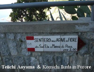 2013年アマルフィ海岸現地視察調査報告<125本 全体メニュー> アマルフィ海岸の位置 フローレの紋章 イタリア国旗 <4>日程・訪問先別ハイライト(2013年6月6日 その5 フローレのBB近くを散策) 最初に、訪問先別の秀逸で希有な景観を写真でブログ風にご紹介しましょう。ソレント半島及びアマルフィ海岸の景観は、単なる自然の美ではありません。9世紀以来、持続する歴史や文化に彩られた空、海、地形によって醸成された希有で秀逸そして洗練された美があります。しかも、そこには慎ましやかな住民の生活と小規模自治体の競争的分権の連携があります。 ◆フレーレのB&Bの周辺を散策 2013年6月7日 昨日、下の薄暮のプライアーノの写真を写した場所の近くで朝のプライアーノの写真を撮ってみました。 ![]() 撮影:青山貞一 以下がその写真です。 宿泊しているB&Bのテラスから撮影したものです。 何とすばらしいアマルフィ海岸らしい写真がとれました。咲いている花は、ブーゲンビリアです。 ![]() ブーゲンビリアが咲き誇る「世界一美しい海岸」 フローレのテラスから撮影したプライアーノの東端 撮影:青山貞一 Digital Camera Coolpix S8 2013-6-6 朝食は8時30分、下はB&Bのテラスです。左奧に見えるテント風の東屋で朝食をとります。 ![]() B&Bのテラス 撮影:青山貞一 フローレにはあちこちに以下のようなセラミックの看板ありました。Contrada della Gatta とあります。別の場所ではセミのようなマークがありました。帰国後調べたら、Contradaが町会、Gattaが雌猫でしたので、おそらく町会ごとのシンボルマークと思われます。さしずめ雌猫町会とでもいうんでしょうね。 ![]() フローレの町会のマーク 雌猫町会 撮影:池田こみち レストランに近いところには、以下のマークがありました。これも帰国後に調べたら Contrada della Cicala とあり、ここは、蝉町会というんでしょうね。 ![]() フローレの町会のマーク 蝉町会 撮影:池田こみち B&Bから西に行くと下の教会があります。薄暮のプライアーノの写真に写っていた教会の鐘楼です。写真では明かりがともっていました。 ![]() 撮影:青山貞一 さらに西にゆくと、直訳すると「愛の小径」とでもいう、かわいらしい遊歩道がありました。下はその入り口です。 ![]() 撮影:青山貞一 ![]() 撮影:池田こみち その小さな遊歩道を西側に向けて歩くと、下の写真のところで終わりとなっていました。そこからはプライアーノの西側がきれいに見えます。 ![]() 撮影:青山貞一 歩道の終点には、下のタイルがあり、なぜか「愛」という日本語のタイルもありました。 ![]() 撮影:青山貞一 さらに、この遊歩道の終点に以下の看板がありました。直訳すると、リュウゼツランの花の道です。さらに Marina di Praia まで2時間とあります。つまり、ここすなわち サント・エリア(Elia)からトレッキングでフローレのプライア海岸まで2時間で行けると書いてあるのです。 ![]() 撮影:青山貞一 下の写真は、トレッキングコースの終点からプライアーノ方面を見て撮影したものですが、よく見ると右下の日陰のなかに小さな道が見えます。おそらくこの道を2時間(ore 2:00)歩くと、フローレの崖下に位置するプライア海岸にでるということなのでしょう。 ![]() 撮影:青山貞一 ここで一旦、B&Bに戻りました。B&Bの真ん前に、下の看板がありました。読めば、フローレの サンタ・エリアとフィオルド(Fiordo)をつなぐみちで、約40分(min 40)かかるとあります。 ![]() 撮影:青山貞一 そこで、私達はB&Bの前にある階段を約1000段下り、フローレの フィオルド(Fiordo)まで行き、そのあと、フローレのプライア海岸(Marina di Praia)まで幹線国道(Super Strada)ss163を歩き、そこで一休みしたあと。さらにプライアーノまで歩きます。プライアーノの大聖堂などを訪問した後、SITAバスでプライア海岸(Marina di Praia)までもどり、そこから山を登り、谷を越え、最終的にB&Bがあるフローレまで戻るという壮大(笑い)な一日がかりのトレッキングの計画を立てました。 つづく |