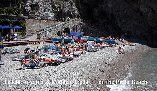 フローレのプライア海岸は下の写真のように午後の強い日差しを浴びる海水浴客がたくさんいました。こんな狭い浜辺ですが、ソレント半島、アマルフィ海岸には砂浜はあまりないので貴重なビーチとなっているようです。